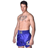 Der Bund ist schmal und sorgt für einen sehr zuverlässigen Sitz. Die Shorts sind mit einem kleinen Logo-Patch am Bein versehen. Dieses Teil wird komplett in Thailand in einer der besten Manufakturen Bangkoks für Muay-Thai-Shorts hergestellt. 100% Zufriedenheitsgarantie - 8 WEAPONS-Qualität.