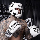 Wenn Sie beim Sparring so richtig loslegen wollen, dann ist der 8 WEAPONS Unlimited Kopfschutz Ihr bester Freund. Er schützt Sie zuverlässig vor übermäßigem Aufprall und Schnittverletzungen. Die verstärkte Stirn- und Wangenknochenpolsterung schützt Sie, damit Sie sich auf Ihre nächste Schlag- oder Trittserie vorbereiten können. Dieser Kopfschutz wird Ihnen lange zur Seite stehen.