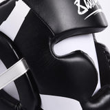 Wenn Sie beim Sparring so richtig loslegen wollen, dann ist der 8 WEAPONS Unlimited Kopfschutz Ihr bester Freund. Er schützt Sie zuverlässig vor übermäßigem Aufprall und Schnittverletzungen. Die verstärkte Stirn- und Wangenknochenpolsterung schützt Sie, damit Sie sich auf Ihre nächste Schlag- oder Trittserie vorbereiten können. Dieser Kopfschutz wird Ihnen lange zur Seite stehen. Der Kopfschutz ist in zwei Größen erhältlich und kann mit dem großen Klettverschluss und dem Stirnband individuell an Ihre Bedürfnisse angepasst werden. Die Ohren sind ausgespart und extra gepolstert. Der Kopfschutz ist aus hochwertigem Kunstleder gefertigt und somit auch für Veganer geeignet. Produktdetails: