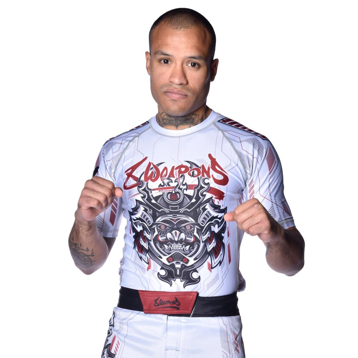 8 WEAPONS Rashguard, S/S, Samurai 2.0, white-red